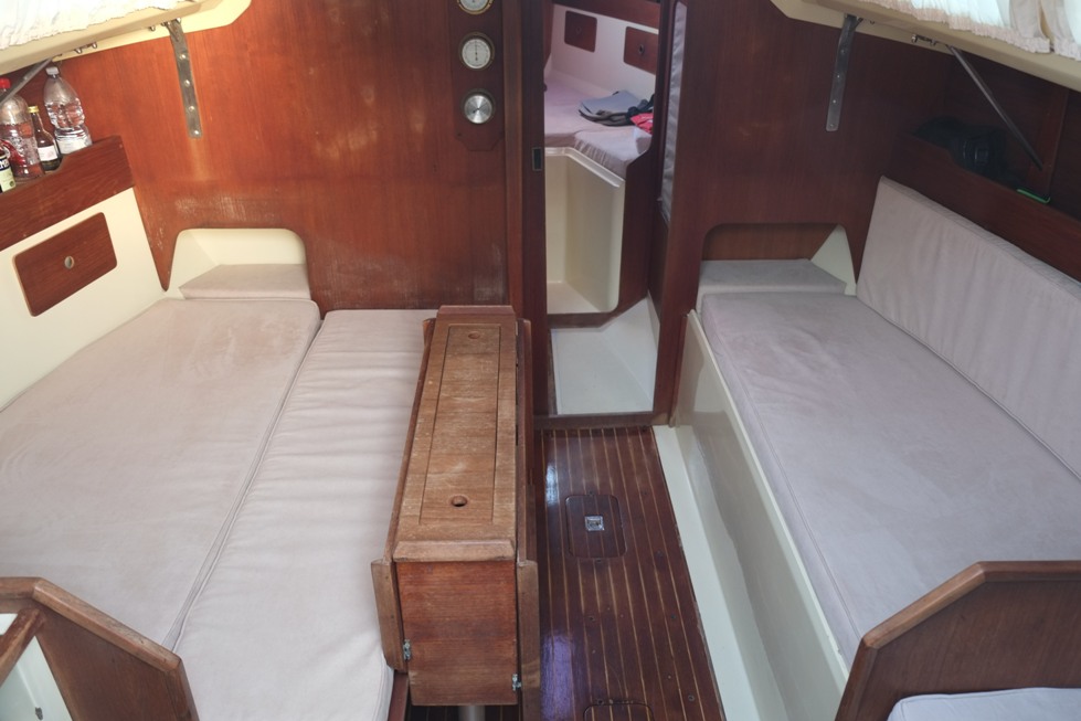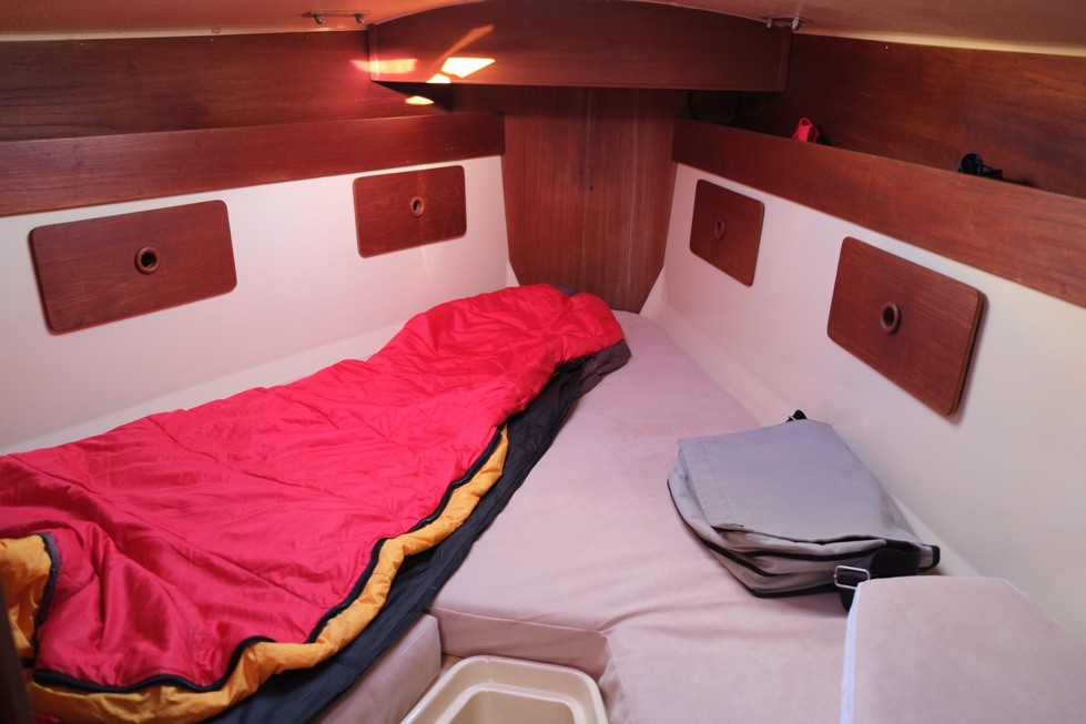 - All’interno, da prua verso poppa: la cabina di prua…